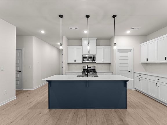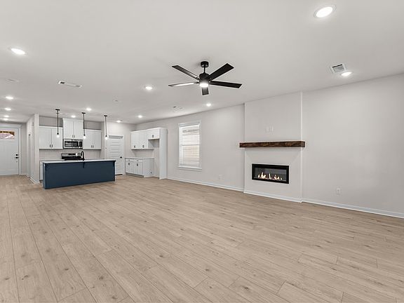Fence, blinds and gutters included! Discover your dream home in the new neighborhood- Jacob's Crossing. Cooper plan with garage on the right & West facing! 9 ft ceilings, linear electric fireplace, LVP flooring throughout the main living areas & primary bedroom, quartz countertops & more. Chef's kitchen boasting frigidaire stainless steel appliances, gas range, pantry, quartz countertops, bar pull handles, large island and gorgeous backsplash. Luxurious primary bedroom features abundant natural light, while the spa-like primary bathroom offers a walk-in shower, tub, double sinks, and spacious walk-in closets. Additional features-secondary bedroom on the main level, 2 large secondary bedrooms upstairs and a functional laundry room. Nestled on a generous lot with covered patio that overlooks the serene sodded, fully fenced backyard, creating an exceptional living experience. Sturdy concrete siding! Model home located at 3631 Tranquility St- Lot 1.