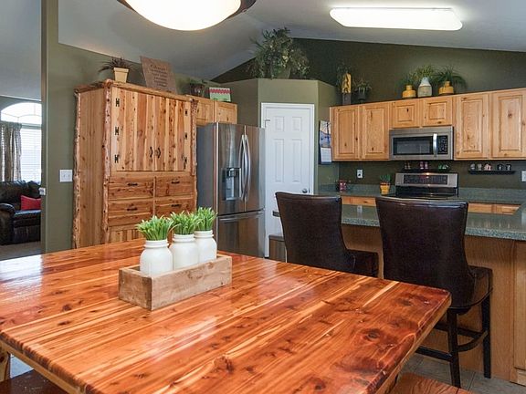 Beautiful, well maintained 3 bed, 2 1/2 bath home in a quiet cul-de-sac with a mountain view. Yard is fully landscaped with a fenced yard, garden spot, and a 40x40 concrete pad perfect for recreation and entertaining. Also includes a 12x16 shed with loft. There is new carpet throughout house with updated kitchen appliances, tile in all bathrooms, kitchen and dining area. Plenty of storage in a 5'4" cement floor crawl space plus shelves in garage.