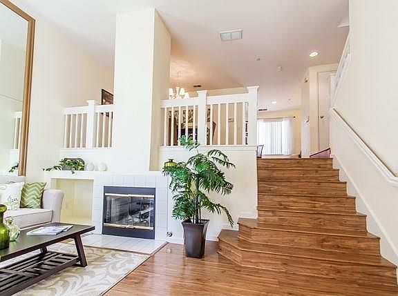 Newly remodeled townhome for rent. This beautiful townhome has 1,400 sq-ft of living space, 3 bedrooms, 2.5 bathrooms located in a very desirable large community of LakePointe near the BART station. The intimate and spacious interior features include luxury vinyl and tile floor, fireplace, large windows with new blinds and high vaulted ceilings. There is a formal dining room plus a breakfast nook. Fully remodeled kitchen is equipped with white modern cabinets that has plenty of storage space, and smooth quartz countertop with dazzling glass tile backsplash. New Refrigerator, oven/range, microwave, and dishwasher are included along with the in-unit high-end washer and dryer. Also installed is a Reverse Osmosis water filtration system at kitchen sink to provide ultra-clean, purified drinking water. For climate control, it has central air conditioning, double pane windows and gas heating. The bedrooms have built-in shelf/drawer in the closet. The home has hard-wired security alarm and comes with an attached garage (2 spaces side-by-side), with a large half-height storage space. ' The community has a swimming pool, a community room and plenty of green space as well as guest parking. It is very close to BART station, Washington Hospital and central Fremont shopping/dining district of Fremont Hub. Terms: $3,590 monthly rent, $4,500 security deposit, 12-month lease, no pets, non-smoking, tenant pays all utilities.
