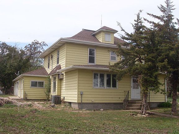 **Submitted Offers Under Review.** Secluded acreage with easy access to Hwy 281. Past era charm, natural woodwork, pine flooring, spacious living room shared with dining area, large country style kitchen. Main floor office/den, 2 bedrooms, bathroom plus side entry mud room with laundry. 4 upper level bedrooms. Partially finished lower level offers 2 hobby rooms & bathroom. Finish the rest as you please!