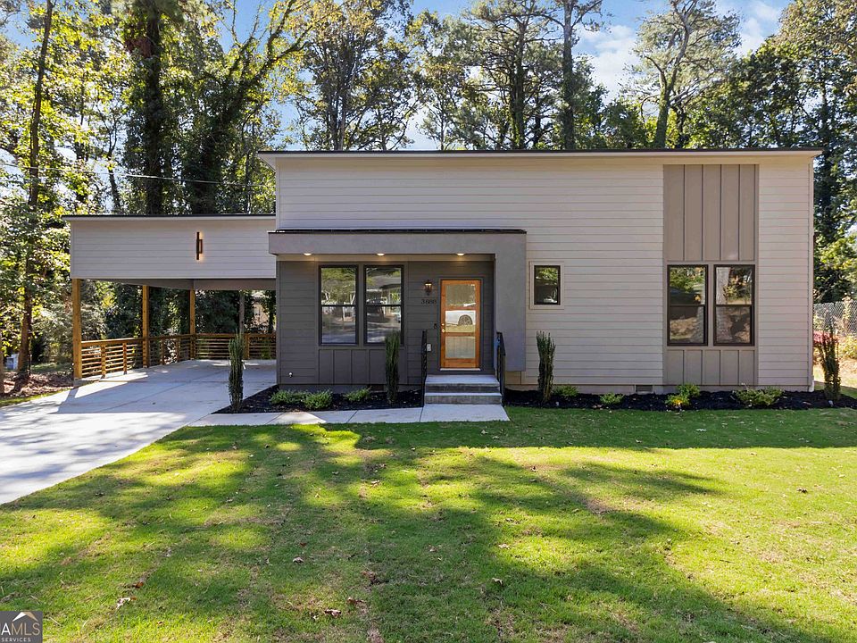 Welcome to a rare contemporary-style ranch that blends modern elegance with everyday comfort - all set on a spacious almost half-acre lot in highly sought-after Southwest Atlanta. This brand-new home features three spacious bedrooms and two-and-a-half beautifully designed bathrooms, including an oversized owner's suite with a spa-inspired bath and an enormous walk in closet. The sleek open-concept floor plan is made for entertaining, with clean architectural lines, large windows, and a seamless flow from room to room. Step outside to a massive backyard and a deck perfect for gatherings or quiet mornings, plus a covered two-car carport for added convenience and style. Located just minutes from city life and major highways, this home is a true lifestyle upgrade offering space, privacy, and bold modern design - a rare combination in this Atlanta market. This is more than just a home. It's a statement. It's comfort, convenience, and contemporary living all in one.