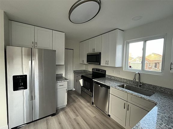 Back on on the market due to buyer's failure to secure the loan. FULLY remodeled house!!! Feels much bigger than official sq footage. New roof 2023. New furnace. Corner lot with no through traffic. Huge corner lot backyard. High ceiling living room with wood burning fireplace. Fully remodeled kitchen with brand new appliances, new cabinets, granite countertops, pantry and eating area. All new bathrooms! Skylight in the master bedroom bathroom. Quick possession. Rare NO HOA property. Beautiful 3 bedroom house with an open basement waiting for your personal touch. Two parks in the walking distance. Very close to shopping, restaurants, and easy access to the RTD station. Easy to show. MUST see.