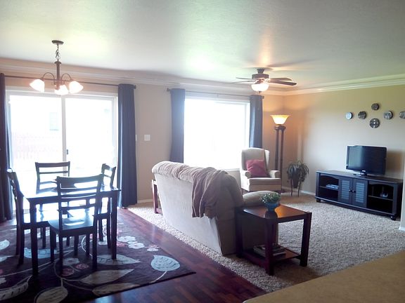 BEAUTIFUL well cared for home located in peaceful neighborhood setting. 3 bedroom, 2 bath. Wide open floor plan. Family oriented living. Nice extras such as built in closet shelving and crown molding with lighting inside, very fun for those movie nights in! A fully fenced in backyard offers additional privacy and safety for young children or pets. 2 car garage including some built in storage shelving. Sprinkler system. Close highway access without being too close to traffic. Lawn fertilizing/weed care paid for this summer with Weed Man. Come take a look today!