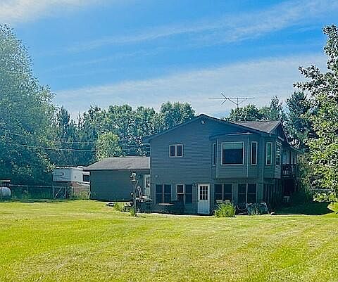 Lower Basement level has 2 more bedrooms, full bathroom, family room area, mechanical room and a large extra bonus space out to patio/BBQ area. Large fenced yard. Pole barn and shed. Apple trees and mix of trees on property. Home is not far from M-66 for easy commutes. New official survey provided...