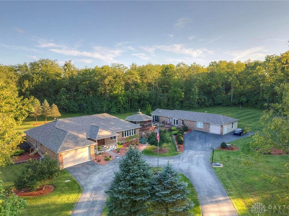 One of a kind home in Yellow Springs! Situated on a secluded and private 5.8 acres, a true oasis. This home offers in total 5,166 square feet between the main house and the guest house. Main house has 3 bedrooms and 2.5 bathrooms. Guest house has 2 bedrooms and 1 full bathroom. 48x32 ft metal barn w/concrete floor, electric and an additional 2 1/2 car heated garage is great for storing your boat, RV, and/or vehicles. Walking into the main house you’ll be astonished by openness and exquisite features. Plenty of natural light with three skylights in the cathedral ceilings. Crown molding throughout. Primary bedroom is very large, walk-in closet, cathedral ceilings, door to the side yard, and a fully renovated bathroom with an enormous jet tub, rainfall double shower, and bidet toilet. 2nd bedroom has sliding door access to the fully wrapped around deck. 3rd bedroom has built in shelving and a see through fish tank. Enormous Kitchen offers plenty of cabinet space, beautiful large island with gas range, double ovens, barstool seating area and eat-in kitchen, new sink, flooring, gas range, and granite countertops. Through the kitchen is the laundry room with built in cabinets and countertops. Through the laundry you have the formal dining room which offers tons of natural light overlooking your oasis and charming double glass doors welcoming you back into the open living area. Off of the kitchen you have sliding doors to the covered outdoor seating area and another door to walk through the gazebo and into the guest house. Fully wrapped around deck is perfect for outdoor entertaining with the gazebo and pond. Guest house offers 2 bedrooms, 1 bathroom, a Florida room, very open concept and cathedral ceilings. Newly renovated kitchen and bathrooms in both houses. Brand new LVP floors, new LVT in kitchens, and new carpet in both houses. Smart home features in main and guest house. Many new updates to both houses, see list attached. See 3D tours attached.