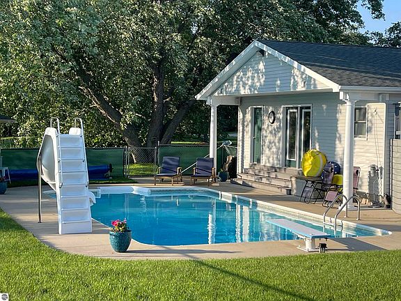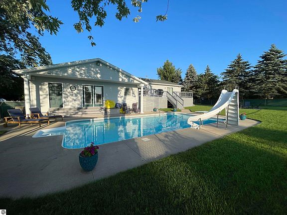 Designed for entertaining, this well maintained and well updated 5-bedroom 3.5-bathroom bi-level home is located just outside the City of Mount Pleasant, Michigan. From inside to outside this home was designed to host large gatherings. Quality finishes such granite countertops, solid oak trim and doors, ceramic tile, and skylights guests will surely be impressed with this home. The kitchen features a pool view, granite countertops, oak cabinets, stainless steel appliances, and ample counter space for food prep and gatherings. With over 400 spft the primary bedroom suite features hardwood flooding, a walk-in closet, tray ceiling and beautiful pool views. A great additional feature is a half-bath with pool access located just off the primary bedroom suite giving the bedroom a second bathroom and allowing guests using the pool access to a bathroom. The lower level of this home has large family room, bedroom, full bathroom, laundry room and several storage closets. The outdoor entertaining this property features is extremely hard to find in the area. The large deck and patio areas seem to welcome large groups with welcome arms. Guests will enjoy the heated 18x36 pool, diving board, water slide and outdoor bar. An additional bonus with this property is neighborhood access to the Chippewa River at the end of the street. What a great opportunity to explore nature. This property truly could become the go-to place for all types of events. See VIRTUAL TOUR link and floor plan for additional information about this quality home.