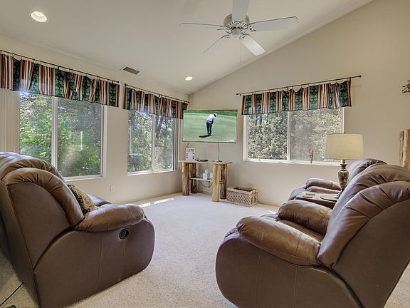 Inviting open floor plan welcomes you into this move-in ready, single level home that is perfect as a weekend retreat or full time living. Spacious greatroom features vaulted ceiling & large picture windows that bring the outdoors inside & frame the mountain views. There is a dining area in the greatroom & a cozy breakfast nook with access to the rear covered deck & landscaped backyard. Generous-sized bedrooms & bathrooms. Master has ensuite bath & walk-in closet. Laundry room with sink, 1yr. old washer & dryer. 2-car garage has been converted to game/TV room but carpet can be removed & restored to a garage. Maintenance-free composite deck, fenced backyard. Currently a vacation rental with reservations honored through September 15th. Please call listing office to arrange showing.