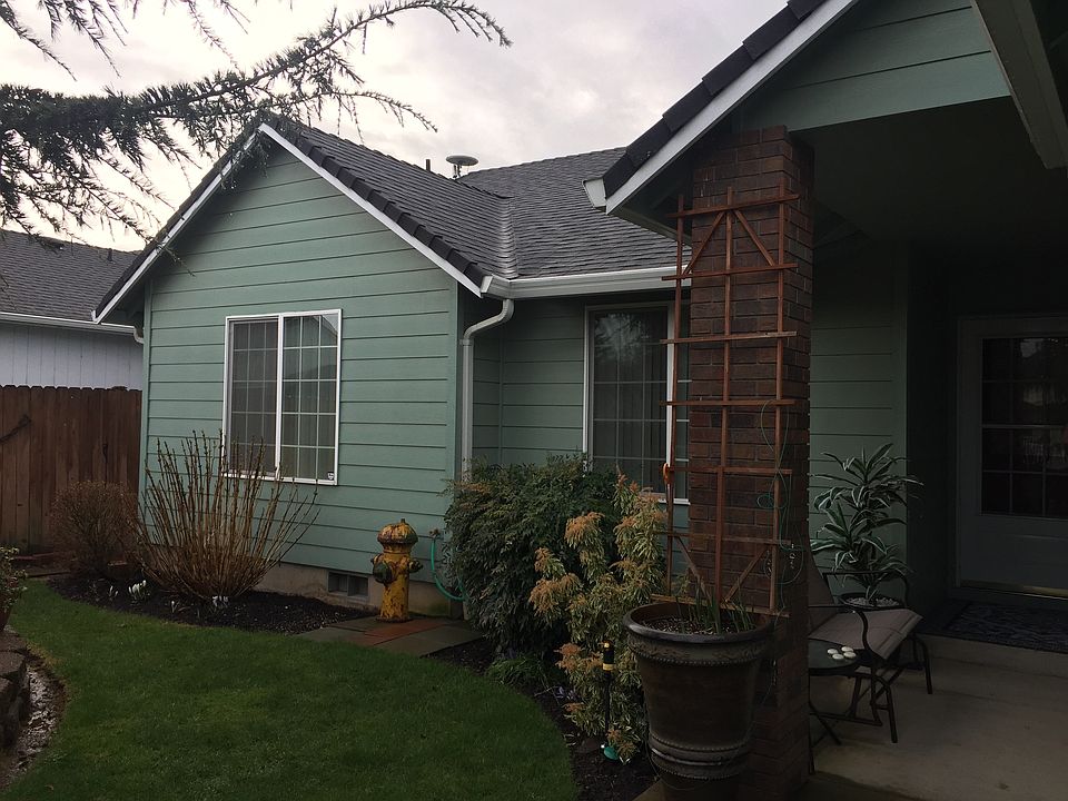 Wonderful North Eugene 3 bedroom, 2 bath home - This one's a gem! Wonderful 3 bedroom, 2 bath clean, single level home (1,518 sq ft) is move-in ready with many updated features. The kitchen is light and bright fully equipped with large eating area and granite counter tops. Sliding glass door off the dining room out to covered patio. Vaulted ceilings with fan and custom flooring. Built-in alcove for large television. Other features: kitchen island, inside laundry room, large master suite with vaulted ceilings, skylight, a large walk-in closet and access to outdoor patio with hot tub. Master bathroom has walk in shower, double vanity and private toilet. Central heating and air conditioning. Exterior features include a private fenced backyard with water feature, and a double car garage in a convenient location. The home is beautifully landscaped in a wonderful neighborhood. Front yard will be maintained for tenant. Pets: Dog under 20 pounds accepted with pet deposit. (RLNE4486646)