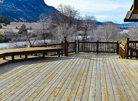 Gorgeous 4/3 home on 20 acres w/John Day River frontage. Open design, spacious kitchen & daylight basement.Walls of windows w/natural lighting. Remodeled in 2007 w/knotty pine, tile & rock accents. Wraparound deck & patio, carport, fenced garden, detached garage/shop combo & cozy 1/1 cabin for extra guests. Fishing/hunting/recreation at its finest. New well, water rights, views. CREP program. Immaculate!