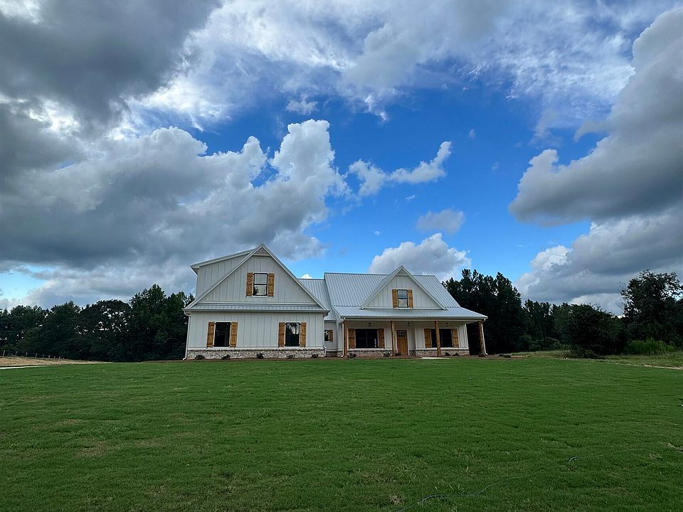 Beautiful Ranch home on 2.5 acres. Farmhouse style with tin roof, 4 br 2.5 baths, open floor plan, covered patio, front porch with cedar post, laminate flooring, granite countertops, farmhouse sink, stainless steel appliances.