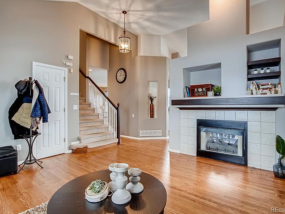 Beautiful home in the heart of Highlands Ranch. Wonderful neighbors, easily accessible to C-470 and shopping/restaurants. 3 Bedroom, 3 bath home with a finished, walk out basement. Basement is large and has two additional unfinished storage areas, one that is plumbed for a bathroom. This basement could easily be converted to have a non conforming bedroom as well! New carpet is being installed second week in March. Upstairs has been newly painted and the main floor has all hardwood floors. Updated kitchen with island and built in buffet. Double sided fireplace makes for cozy nights in the winter. 3 car garage with plenty of storage. Large backyard with a deck and poured patio below. Inviting front porch and ready to be called Home!