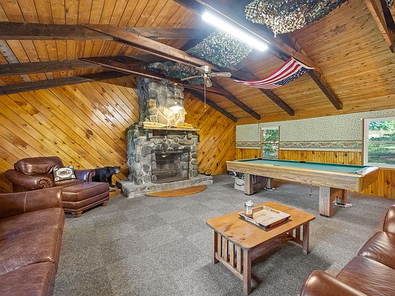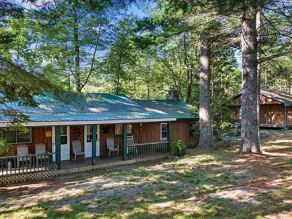 This is the ultimate ''UPTA camp'' property. This is the former Meadow Mountain Bear Lodge, and comes complete with a shiner stocked private trout pond! This rustic and fun property features 2 separate living quarters in the main cabin, which each has a kitchen, bathroom, living space and bedroom. In addition this has a guest cottage which has its own bedroom, bathroom, kitchen and living space. Altogether this property can sleep 12 or more people. Both Great Pond and Long Pond are close by for recreation, and the Sunrise Trail for taking your ATV on, or snowmobiles. This is a hunter or fisherman's paradise, but if this is not your interest, this property has loads of investment income potential. With some updates and renovations, it would make three potential rental spaces, or it could be a wonderful family camp or homestead. Well and Septic are right on sight! Enjoy the warmth of the stone fireplace in all seasons! Don't wait to see this unique property.