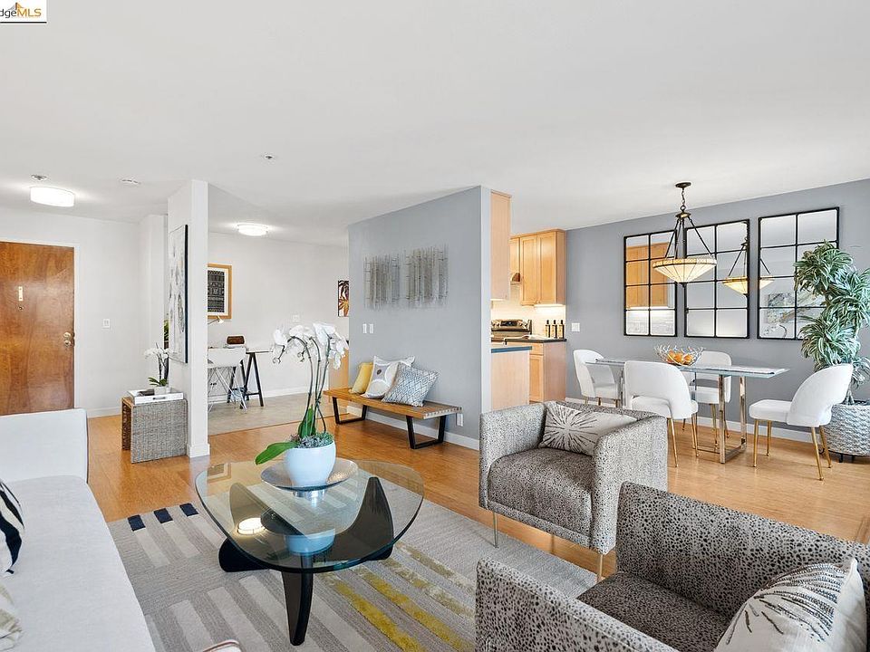 Located in the Adams Point neighborhood of Oakland, this sophisticated two bedroom, two bath home is in the Belmont Staten Building.The spacious living- dining area with bamboo flooring, fireplace and balcony. The updated gourmet kitchen complete with maple cabinets, Silestone counters and stainless steel appliances flows to a separate breakfast area, or home office. The en-suite primary bedroom has new carpet a walk-in closet and bath. The second bedroom is a good size, enjoys a wall length closet & is near the second full bath. Both bathrooms have updated sinks, counters and vanities. The interior has been freshly painted, and has the convenience of an in-unit washer and dryer. The building offers two elevators, a gated security garage, deeded parking space and bonus storage locker, plus 4 guest parking spaces. Just a couple blocks from Lake Merritt, and close to Grand Ave and Lakeshore Blvd, there are all amenities needed to fully enjoy an urban lifestyle. Easy access to the Grand Lake Theater, coffee, restaurants, bars, shopping, farmers market, and several transportation options.