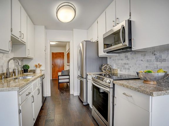 Exquisitely remodeled modern condo at beautiful Adams Point! A spacious top floor corner unit with balcony and views of Oakland Hills and Lake Merritt. Granite counter tops, brand new Samsung SS appliances, 7" white oak hardwood floors, in unit laundry, and garage parking. One block Lake Merritt. Half block from Grand Avenue and its popular shops and restaurants. Short distance from BART. Walks score 91. Must see!