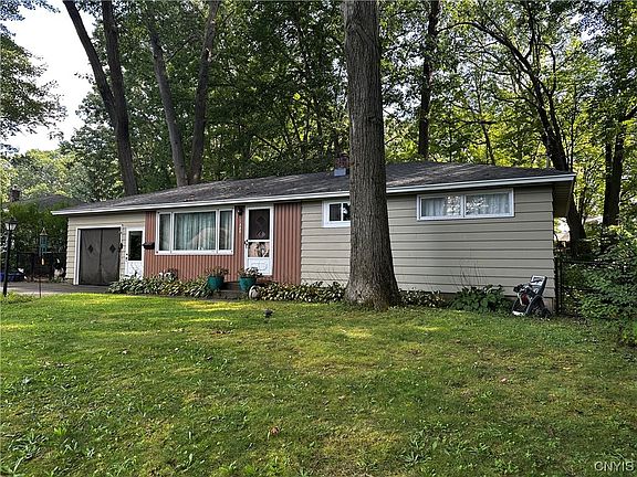 Delayed showings until 5 Pm Thursday, No negotiations until 9-11-23 @ 12pm. Welcome to this Charming North Syracuse Village area Ranch Style Home! Sitting just outside of the village limits there is no additional taxing. This well Maintained One Floor Living Home offers 960 Sq.ft. and sits on 1.11 acres of gorgeous woods! Front Door leads to a large Livingroom Room with picture window! Hardwood Floors run throughout most of the residence! This Gorgeous L-Shaped Kitchen has large eat in area + Stainless Steel Appliances + peninsula + Large pantry. Huge Master Bedroom w/double door closet. 2nd + 3rd Bedroom w/Hardwoods! Full Bathroom Upgraded w/newer vinyl Surrounds + tub + Vanity! $ave= New Furnace + New fully fenced black chain link fencing + Hot Water Tank + Shed+ newer fridge stove washer and dryer! Beautiful privacy Lot that seems to Keep On Going with a full walk out basement! Great Home w/an Insanely aggressive Price….book your Showing Today!$!