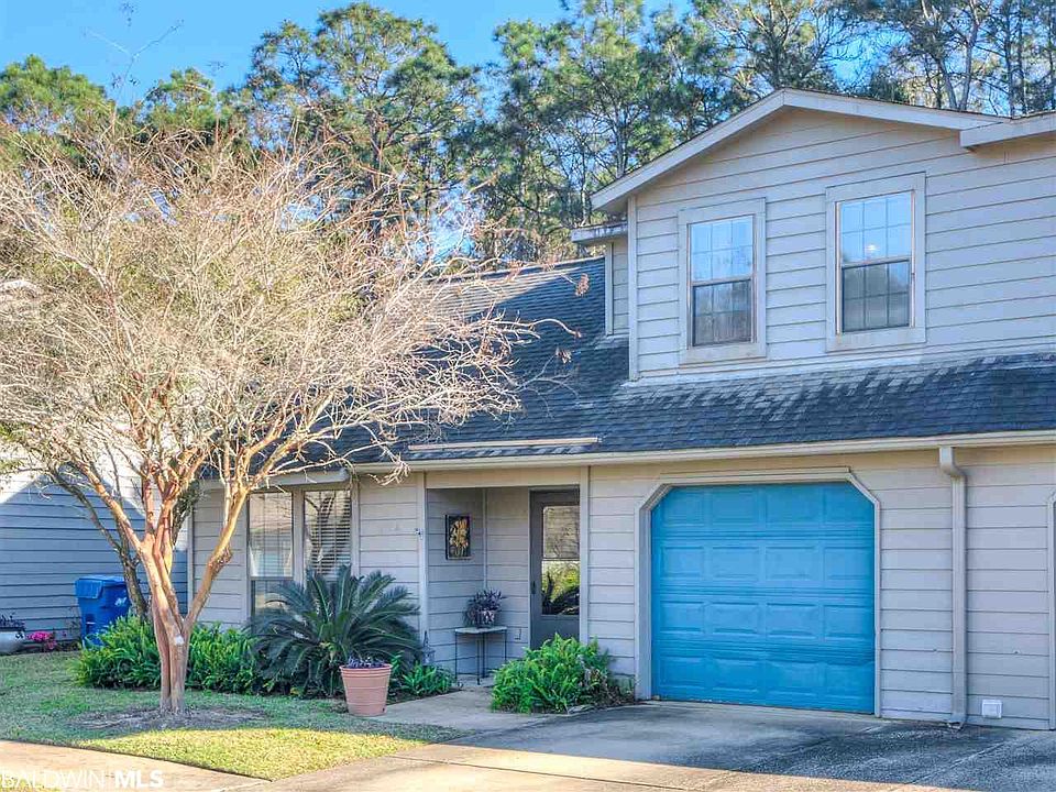 If you are looking for a quaint, centrally located, desirable area in Gulf Shores, this is the place for you. This 3 bedroom, 2 bath, end corner unit townhome has the Kitchen, Dining Area, Living Room, Fireplace & Master Bedroom / Bathroom on the lower level. The upstairs offers two Bedrooms and a Full Bath. The kitchen has a new range(2020), vent hood (2020) and the dishwasher was replaced in 2016. This quiet unit also has an attached garage and a new back sliding door that leads to a large patio for you to sit and enjoy the beautiful wooded view in the back. The low HOA fees includes landscaping, garbage, pest, cable & internet service. Owners are responsible for their own insurance, water, power and exterior maintenance. This unit has been well kept and is walking distance to the Dog park, Restaurants, Shopping, Library, Churches and the Bodenhamer Center.