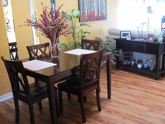 This spacious 3Br 2Ba Townhome features granite contertops in kitchen. Luxury plank flooring throughout including the Master Suite and additional upstairs bedroom, downstairs bedroom has new carpet. Downstairs bath includes a walk in custom tiled shower, new bathroom vanities and sinks in both baths. Tiled patio with large Palm tree. Exterior painted 6/16.