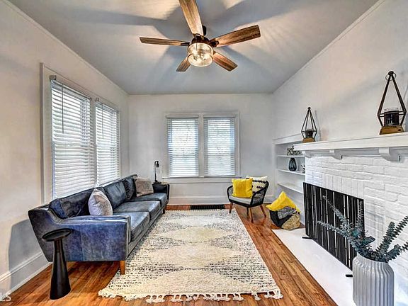 1925 BUNGALOW just 4 blocks from E ATL VILLAGE! INCREDIBLE LOT! Preserved original hardwood floors, incredible private fenced backyard, level driveway! Updated kitchen with granite counters, tile floor, finished laundry room w/ plenty of storage! PORCHES: front, rear, side porch with lawn spaces for entertaining or pet! Updated millwork, interior paint, built in shelving, updated lighting-ceiling fans. Updated bathroom with glass shower, updated tile/vanity. 3 HUGE MASTER CLOSETS! Wainscot paneling and 2 FIREPLACES! NEW FURNACE,WATER HEATER,SUMP PUMP,WINDOWS, LIGHTING!