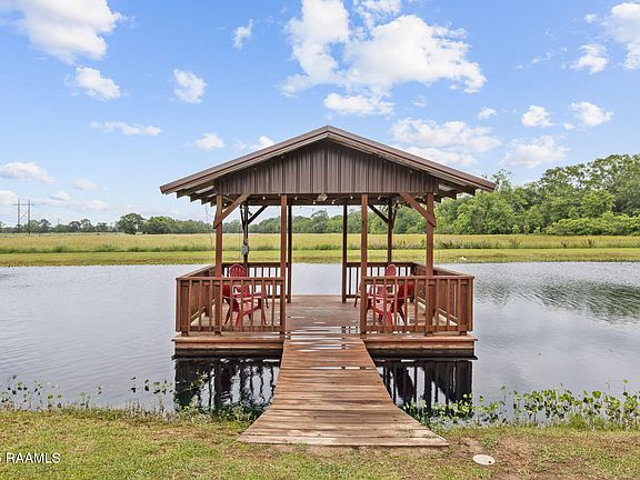 Welcome to your dream country retreat nestled off scenic Goyo Road! This stunning Acadian-style home sits on 4 serene acres and boasts a brand NEW ROOF and a host of custom features that blend rustic charm with modern comfort. Enjoy peaceful mornings on the lovely front porch, or unwind by the fully stocked pond (brim and bass) featuring a tranquil deck built in 2018--perfect for entertaining or enjoying a quiet moment surrounded by nature. Inside, natural light floods the open floor plan, where the spacious living room features a brick Xtrodinair wood-burning fireplace and an impressive brick archway. The kitchen is a chef's delight with custom cypress cabinets, a freestanding island, stainless steel appliances, and a cozy breakfast area overlooking the pond. A formal dining room provides ample space for gatherings. The oversized primary suite is conveniently located downstairs and features French doors leading to a large private patio, a spa-like bathroom with a double vanity, separate shower, soaking tub, and a huge walk-in closet.Upstairs, you'll find two generously sized bedrooms, each with their own en-suite full bathrooms--ideal for family or guests.Additional highlights include: 30x40 metal workshop with roll-up door, RV cover, 2-car garage (with storage area), Beautiful custom cypress built-ins in the living area, Don't miss your chance to own this peaceful slice of paradise with space, storage, and style! Schedule your showing today!