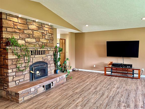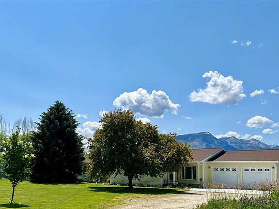 This lovely remodeled home on 2.35 acres off County maintained Grantsdale Road in Hamilton, Montana, offers convenience and unique charm hosting a 2 story gazebo built from 100 year old reclaimed barn wood moved from a local Ricketts Road site. As you enter the front door, an expanded living room features a vaulted ceiling with dimmer controlled recessed lighting, ceiling fan and a rock faced fireplace with double sided Maynard wood stove insert. Seller added (2) built in cherry wood lighted wall cabinets in the living room and offers the wall mounted Smart TV as an inclusion. Custom knotty hickory kitchen cabinets and soft close drawers are a focal point with the dark marbled laminate countertops with beveled edges. Kitchen appliances are included: Amana Refrigerator, Bosch Dishwasher, Frigidaire Natural Gas 5 Burner Stove with Convection Oven and Microwave. Dining Room is open to kitchen, brick sided fireplace with double sided Maynard wood stove insert and offers an easy to open sliding glass door to the private covered back composite deck to enjoy the Bitterroot Mountain views just beyond Seller’s beloved 2 story gazebo which is a perfect place for small gatherings, yoga sessions, sunset viewings or just quiet time with you and Mother Nature. Back inside, the main hallway offers access to a full bathroom, (2) guest bedrooms and primary suite with private three-quarters bathroom and an eye catching custom black and white handmade Spanish tile floor. Something extra fun and inviting about this property is the sunroom addition, on concrete slab with in floor heat, located along the southside of the home. Large windows enhance south sun exposure, (2) skylights with remote and solar rain sensor offers extra ventilation and the cutest free standing natural gas fireplace with remote and fan offers an additional heat source as needed. Sunroom is accessible from the exterior sliding glass door or the custom made pine barn doors leading to/from the SE primary bedroom or SW guest bedroom. Relaxation in the sunroom is a must but when you need to entertain, the sunroom is a great place with built in pine cabinets, Frigidaire mini refrigerator, wine rack sliding drawer, bar sink and Italian Marazzi porcelain floors. Don’t forget to notice the glass blocks installed from the 1940’s Rainbow Bakery in Sacramento, California, which completes the ambiance of the living room and sunroom areas of the home. French doors open into the bonus room, currently used as an office, located on the NE side of the home. Large laundry room area provides washer/dryer hookups, deep storage space for pantry items, linen closet, owned Kinetico softener system, electric hot water heater and dog door entry. Attached 2 car garage includes (1) automatic garage door opener with remote, 220 plug, work bench area, (2) wall cabinets and separate door leading to the covered back concrete pad area (could be used as a carport if needed). Back yard concrete pad is ready for your hot tub with wiring and separate breaker. 2 story gazebo has electrical service and built-in seating. Hobby shop shed is ventilated and offers electric baseboard heat. Red barn outbuilding has electrical and is multi-level with a concrete poured floor, wood floor and loft area. This property is a must see!! We haven’t even gotten started about all the beautiful mature landscaping with numerous fruit trees, rose bushes, Lilacs….. let alone the fenced garden area. Please make an appointment and come preview this property for additional details regarding the natural gas furnace with humidifier, Daikin air conditioning system, underground sprinkler system, irrigation ditch water rights (irrigation equipment included) and so much more! Contact JoyceAnne Jodsaas 406-239-5726 or your real estate professional.