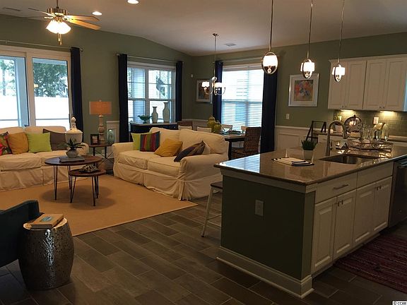 Lakeshore is a natural gas and gated community in Murrells Inlet, a small quaint community of 68 homes once completed, center pieced by a 4 1/2 acre lake, lots of trees and privacy lots available. This home is a very popular ranch home with 3 bedrooms and 2 baths and huge covered porch overlooking the large pond. Design features include natural gas fireplace, "wood looking" gray tile floors in main areas and extends through hallway and baths/laundry. 5' shower in Owner's bath. Kitchen is open to family with large counter height work island, bisque cabinets, light colored granite, gray subway glass backsplash and gray paint throughout. Pictures in this listing are illustrations of the home being built but not the actual home. This home is under construction and will be at flooring stage soon.