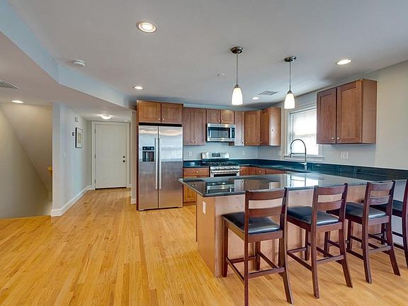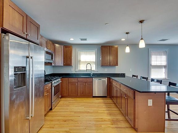 Enjoy urban luxury living in this gorgeous bi-level condo. The first level features a (corner unit so very bright) and open floor plan with hardwood floors - perfect for entertaining! The 20' x 26' combination kitchen/dining room/living room includes granite countertops and a Chefs kitchen equipped with Bosch stainless steel appliances and a center island. On the lower level you will find two bedrooms including a large master suite with bathroom. Just walk out your back door to a professionally landscaped yard and a deeded off-street parking space with a private electric plug station. It's conveniently located on the JP/Rozzie border, just one mile to the Forest Hills T-station, one block away from Pagel play ground, & 5 blocks to the Flaherty pool, park & new playground There are plenty of restaurants within walking distance and the 265-acre Arboretum is ideal for jogging, biking, cross-country skiing, sledding and nature walks. Freshly painted ready to move in!