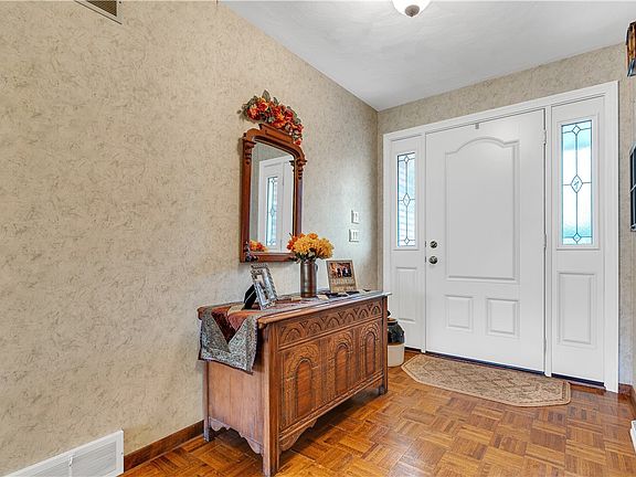 Sprawling custom brick ranch on 4 private acres in Connoquenessing Twp! Lovingly built and maintained by the original owner, this spacious 3-bed, 2.5-bath home offers a versatile layout with both formal and casual living areas—living room, dining room, den with pellet stove, and a stunning four-seasons sunroom with vaulted ceilings and backyard views. The oversized kitchen includes ample cabinetry, a center island, and walk-in pantry. Main-floor laundry and attached 2-car garage add convenience. Primary bedroom features an ensuite bath and walk-in closet. Huge basement includes a workshop, tall ceilings, exterior access, and rough-ins for a second kitchen—ideal for finishing or multi-generational living. Enjoy the large back patio, mature trees, shed, and peaceful setting set far off the road. Just minutes from Cranberry, Evans City, and Route 68. A rare opportunity with land, space, custom features, and serious garage/shop potential. Search the address on YouTube for a video tour.