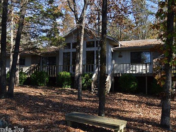 Beautiful lake view home on 2 lots (1.25 acres), open floor plan with cathedral style beamed ceilings & lots of windows! 3 large bedrooms, 2 full baths & oversized garage w/extra storage room for all the lake toys! Wood burning stove in custom rock fireplace for those cool evenings. Beautiful wrap around decks for relaxing or those family BBQ's! Boat launch & swim beach just minutes away!! Across the street from beautiful Greers Ferry Lake! Comes with all appliances and furnishings (dining set excluded).