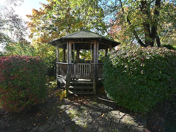 Welcome to 389 Lincoln Street. This home is brimming with charm, space, and potential. Nestled at the end of Lee Street, the grounds provide more than meets the eye with a lovely gazebo, garden featuring waterfall/fountain, stone patio and walkways, shed and a detached garage that provides plenty of space for your vehicles & equipment as well as extra space for a workshop. Equipped with its own power meter, it is a great asset, and might be possible to reimagine as an ADU for additional space. Inside the home there are so many features to love from the hardwood floors and wood trim to the built-ins, glass doorknobs, and other period details. And don't miss the modern touches, including central air conditioning! Desk and rugs at property convey with the sale. This house sits on approx 0.6 acres with enough land to split off a buildable lot.