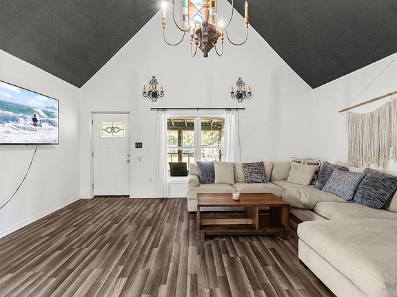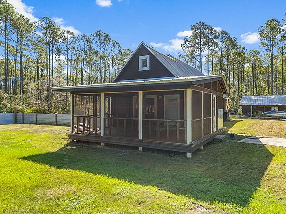 Quiet coastal retreat in fantastic location on large lot and NO HOA!Contemporary concrete home on 1/2 acre in a peaceful and serene setting just minutes from the Gulf of Mexico. This 3 bedroom, 1.5 bathroom home with soaring ceilings has been updated and delightfully accented with chandeliers and artistic flair. The oversized screened front porch overlooks the expansive lawn with fruit trees. This fully fenced property has a detached metal studio/workshop and carport on 6'' slab plus an additional insulated storage building that can be heated and cooled - this flex space makes a great office! Primely positioned for work and play!4 minutes (2.4 mi) to Grady Brown Park.15 minutes (10 mi) to Grayton or Blue Mtn. Beach6 minutes (3 mi) to Publix & Shoppes of Freeport.