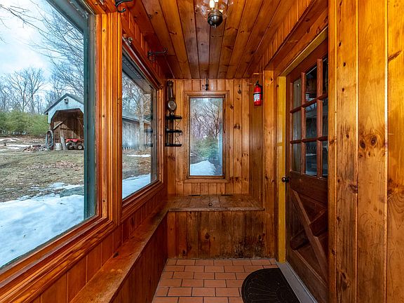 Perfect location for this country gambrel that's set back from the road. This charming home has flexibility for family living. Great mudroom entry has easy storage, the open concept living dining room w/stone hearth and cozy woodstove that is a great source of heat , efficient kitchen w/custom oak cabinets & room that abuts the kitchen can serve as an office or pantry, sunny family room with 2nd woodstove, hardwood floors & sliders to deck; & full bath on the first floor. The second floor boasts 2 , similarly sized bedrooms, , 2nd full bath with laundry area, 3rd room w/exterior door is good flex space for office, sewing or craftroom. Custom touches & great lighting fixtures throughout the house. This home has been well maintained & boast Buderus boiler for heat & hot water. There's a 2 car detached garage with overhead storage space - perfect for vehicles and workshop for the weekend warrior. There's another barn like building that houses wood & equipment. Nice level lot bordered by stonewalls & great space for family, work & play. Welcome to country living!