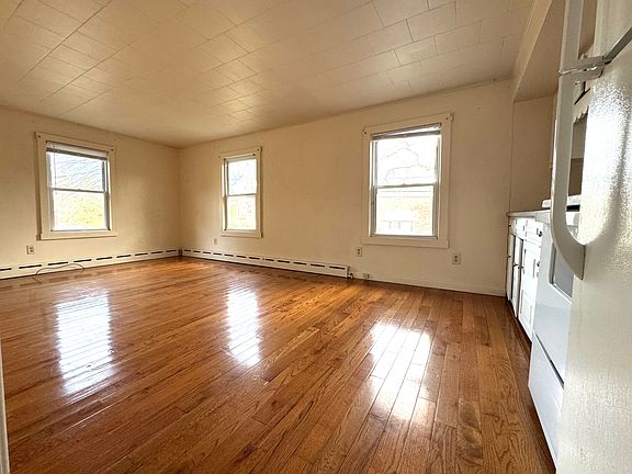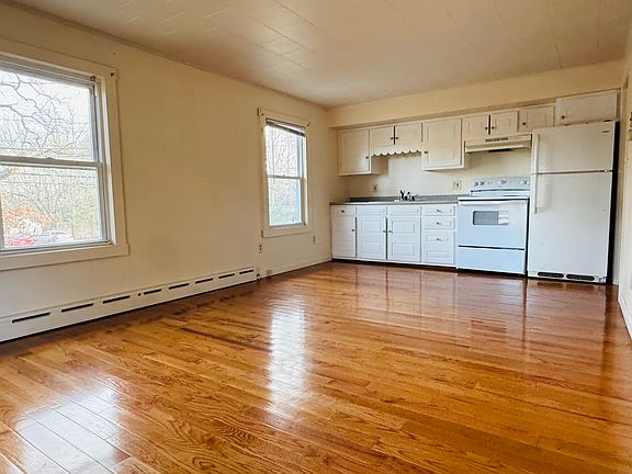 Large renovated 1 bed 1 bath available now! This right side of duplex unit features hardwood and laminate floors, open layout throughout, large backyard, laundry in the basement, and off street parking. Tenant is responsible for electric and oil. Great location, close to schools, parks and highway! A year round lease! Owner pays for water. Renter is responsible for oil and electric. Last month's rent due at signing. No smoking allowed. Cats are allowed.