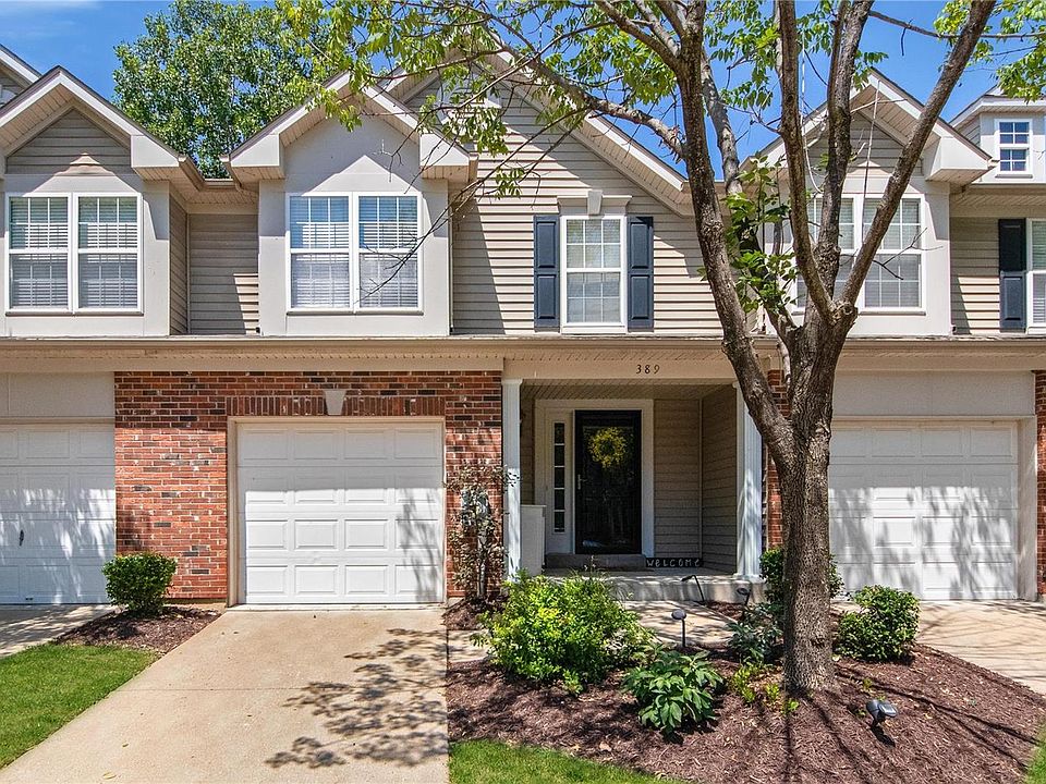 This 2 bedroom, 2.5 bath townhouse has everything you are looking for! Maintenance-free living and a fantastic location. The main level has an open floor plan, great for entertaining. Livingroom features a gas fireplace. Kitchen with stainless appliances, pantry and a center island with seating for two. Separate dining area with access to the back patio. The main level also has a powder room and access to the attached 1 car garage. Upstairs you will find a loft area, perfect for a family room or home office. Primary bedroom has a large walk-in closet and private full bath. Second bedroom and full bath complete the second level. Unfinished lower level with rough-in for a bathroom could be finished for more living space. Walking distance to community playground and gazebo. Easy access to Page Extension, I-70, Katy Trail and so much more!