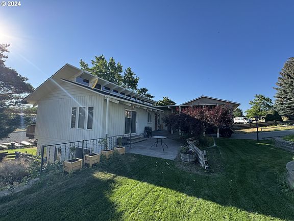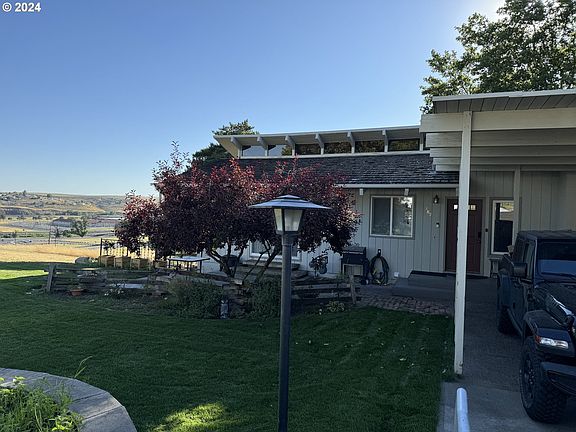 Tucked away in a quiet cul-de-sac is this charming Pendleton home! Enjoy 2400 sq ft on two levels, with 4 bedrooms and 2 bathrooms, and plenty of open living space to entertain! On the main floor find your kitchen, dining and living room space, with soaring ceilings accented with beautiful beams, opening onto the large deck with great views! The primary bedroom is also on the main floor, along with a bathroom with newer flooring. The basement has newer paint and floors with 3 bedrooms and a large family space, leading to an indoor workshop, perfect for a home office. Don't forget the garden shed out back! This is a great home at a great value. Schedule a showing today!