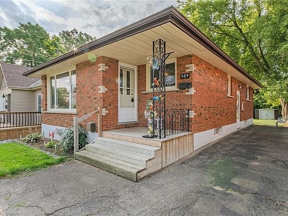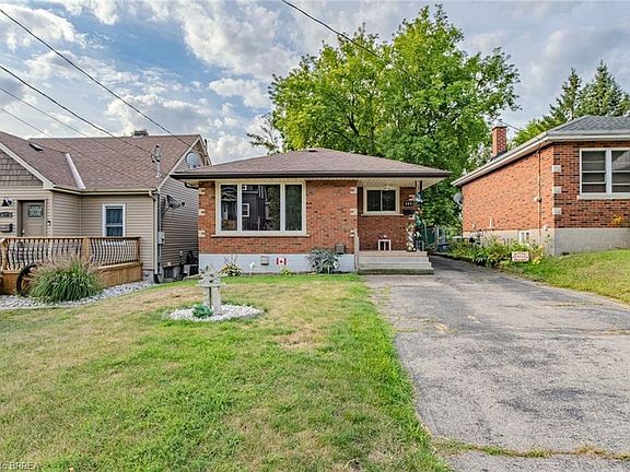 3 bedroom brick bungalow in Echo Place area of Brantford. Well maintained by its current owner for the last 26 years! Eat-in kitchen with oak cabinetry and laminate flooring. Fridge (new in 2023), stove and range hood included. Nice sized living room with large picture window and original hardwood flooring. Updated windows throughout. Updated steel doors in 2023. 4 pc bath on the main level. Large spacious recreation room for entertaining guests with cozy gas fireplace! Extra room in basement could be bedroom/office/craft room! Workshop area and plenty of storage. Roughed in plumbing for toilet in basement. Owned hot water heater. Central air 2020. Two sheds in rear partially fenced yard. Gutterguards installed 2021. Ceiling fans in all 3 bedrooms. Washer/dryer and storage shelves in laundry/utility room stay. Roof 2014.