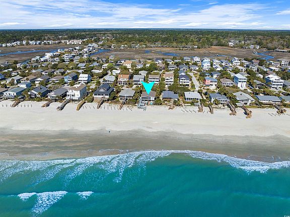 Oceanfront beach cottage on Litchfield Beach. Direct beach and ocean view. Spacious screened porch overlooks the in-ground pool tucked behind low sand dunes. Classic floor plan provides central common areas with two bedrooms and a full bath on each side. Ground floor offers half bath, laundry room and two covered parking bays beneath the house. Home to be sold furnished. Primary residence or second home with excellent rental potential. Voluntary POA. The primarily residential community of Litchfield Beach has a laid-back vibe with a lot to offer, including access to miles of pristine beach, creek access via a small public boat launch, Lowcountry scenic vistas as well as a few shops and restaurants within walkable distance. Myrtle Beach International Airport is 20 miles north. Historic Charleston SC is 70 miles south.