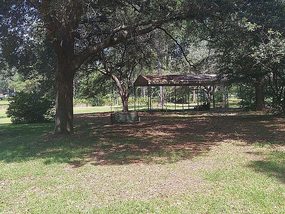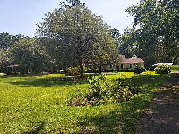 Located just outside of the city, this 4+ ac property offers convenience and comforts combined with a comfortable country feel. Pulling into to drive you are greeted with a striking view of this contemporary style home across the pond. Nestled on the back side of the property, this home is surrounded by Live Oaks and pines. Step inside from the garage and you are greeted by the spacious kitchen with with its granite counters, bountiful cabinets, and a large walk-in pantry. When the day is done, you can relax in the den and enjoy a blazing fire in the wood burning fireplace. Retiring for the evening, you are greeted by a custom tiled shower to wash the day away. In the morning you are greeted by the outdoor scenery while you enjoy a little FB in the heated and cooled sunporch. This property also includes a spacious storage/man cave with power, and an RV shed to store all of the toys.