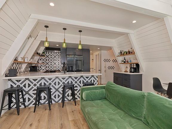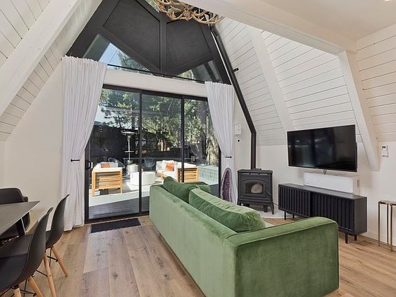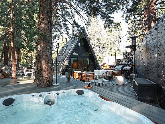 Nestled in the center of Mammoth Lakes, this luxurious 3-bedroom, 2.5-bathroom A-frame is the epitome of mountain living at its finest. Recently undergoing an extraordinary transformation, this cozy abode now boasts $500,000 worth of exquisite interior and exterior enhancements, providing an unparalleled living experience that harmoniously blends nature with comfort. Every inch of the property has been meticulously renewed, with only the exterior walls remaining from the original structure. With a new metal roof, windows, and doors, and heated bathroom floors, this home now exudes modern sophistication. Step outside onto the two grand decks, one at the front and the other at the back, where you'll feel the crisp mountain air rejuvenate you, and enjoy the sunset through the trees from the built-in jacuzzi after a day's adventures. Situated on the largest lot in the neighborhood, the property offers privacy and space, a place where you can unwind, host gatherings, and relish in the beauty of nature. Step inside to discover a complete interior transformation, where no detail has been spared. The kitchen boasts high end appliances, new cabinets, and quartz countertops. The open floor plan seamlessly connects the living spaces, accentuating a sense of warmth and connection. The detached office, perfect for remote work, features radiant heating and electrical connectivity, creating an inspiring space to tackle your professional endeavors amid the stunning mountain vistas. The new driveway has space for 8 cars. Full RV hookups and a dump station add convenience for those seeking a nomadic mountain lifestyle. Right in the heart of Mammoth Lakes, you'll have easy access to restaurants, shopping, and the main street district. With every detail meticulously taken care of, this mountain retreat is a fully turnkey home. Welcome to a world where mountain luxury living meets convenience, comfort, and beauty, inviting you to create treasured memories for years to come!
