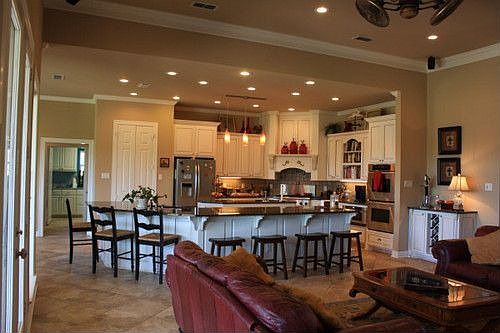 SITUATED ON 7 ACRES OVERLOOKING LARGE POND, THIS HOME WAS DESIGNED WITH ALL OF THE AMENITIES. OPEN PLAN WITH SURROUND SOUND IN THE DEN, ISLAND KITCHEN, THERMADOR GAS COOKTOP, STAINLESS APPLIANCES, ICEMAKER, GRANITE, CUSTOM CABINETRY, DOUBLE OVENS & WARMER, POTFILLER & PREP SINK. MASTER SUITE FEATURES COFFEE BAR, SITTING ROOM/OFFICE, HUGE CLOSET WITH BUILT-INS AND WALK-IN SHOWER. LARGE PATIO WITH FP OVERLOOKS THE POND. 2-STALL HORSE BARN, WORKSHOP, GATED, FENCED, PROPANE TANK & WELL. MIN FROM LOO
