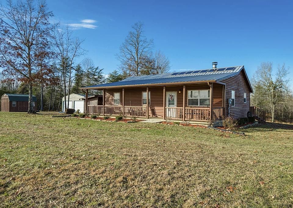 Log sided home on 14.66 acres with panoramic country and mountain views bordering a large creek! Big covered front porch, large open deck, multiple outbuildings and a large detached metal garage/workshop! Inside, there's lots of hardwoods, a wood burning fireplace, 3 bedrooms and 2 baths, and all kitchen appliances. Tennessee beauty in the historic Muddy Pond area!