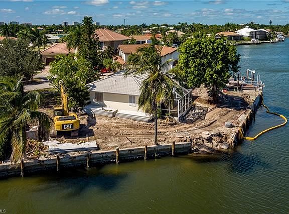 Fantastic opportunity to own a large tip lot with quick access to the Marco River and Gulf of Mexico. BRAND NEW SEAWALL being installed by Blue Marlin is in progress now! Rookery Court is a beautiful street with many new homes walking distance to beautiful Plummer Park. This 1967 home being sold furnished. A spectacular new home could be build on this oversized homesite with 167 feet on the water!