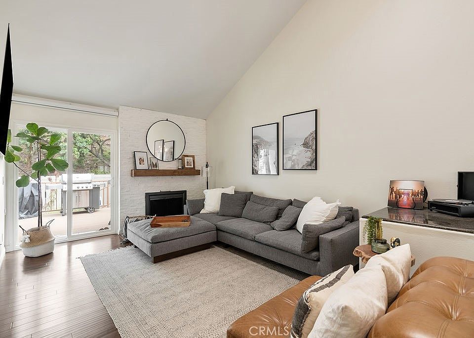 tranquil retreat, offering vaulted ceilings, direct slider access to the backyard, and a