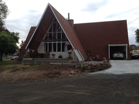 A view of the Blues highlights this stylish 3 bdrm, 2 bath A-Frame Chalet w/ Palatial floor to ceiling fireplace. Recent updates include an elegant bathroom remodel w/ tile shower, new "wood flooring" thoughout kitchen/dining, newer central air & underground sprinklers. Large rooms with Soaring Vaults provide expansive spaces. Real wood interior & natural light impart a warm, inviting ambience. RV Parking, Deck, $15,000 Price Reduction