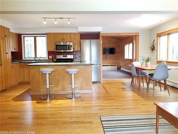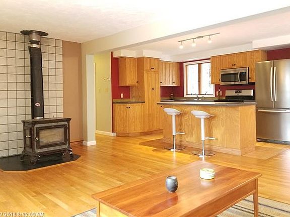 Endless possibilities! Darling ranch home situated on 29 acres of field and woods. Own your very own apple orchard and other fruit bearing trees. Fish, hike, x-country ski or hunt right out your back door! This home features wood floors throughout, open living area concept fabulous sunset views over neighboring pond. Kitchen features gas range, SS appliances, hardwood cabinets and beautiful Corian counters. Living room with wood burning stove, cozy den wrapped in v-match pine and back 3 season porch over looking back yard. Back lot potential.