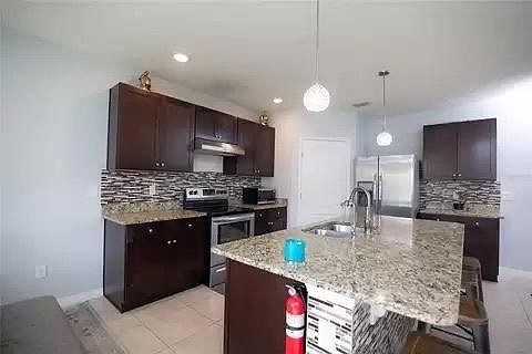 Open House: February 17th, 9:30a-12:30p Beautiful 5 bedroom 3 bath home in the Tanglewood Preserve community in Davenport. A few minutes away from I-4, this is perfect for a family looking for a quiet and peaceful community, while still being able to get near shopping and entertainment quickly. This home will offer you 5 bedrooms, in addition to an office space at the front of the home and a loft space on the 2nd floor. The kitchen is equiped with stainless steel appliances including a new refrigerator, a pantry, and plenty of cabinet space for all your household needs. Also includes new hardwood floors, a water softer filtration system and a fenced in backyard. Lawn services will be paid by owner. Resident will be responsible for water and electric. $2575 security deposit will be due at lease signing. $400 pet non-refundable deposit and $50 monthly fee, if applicable.