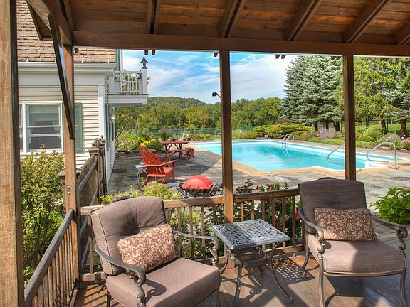 Main House ~ Guest House ~ Heated Pool ~ Otsego Lake Views ~ Outdoor Stone Fire Place ~ 2 Car Garage ~ 1.8 Acres ~ Lake Access & Rights ~ Minutes to Cooperstown!!Welcome to 389 Thurston Hill Road, an exquisite property set on a knoll overlooking Otsego Lake with an oversized, heated pool surrounded by a stone patio, lush perennial gardens and a beautiful stone fireplace.The Main House was built in 1860. A large kitchen with island, pantry, bar sink, and half bath were added in 1997 along with the covered deck. The gracious farmhouse- style living room is a bright, inviting space which features a propane gas fireplace and efficient mini split wall unit. The first floor Master Suite is very spacious and has two large closets, and a private bath with whirlpool tub. Upstairs are two bedrooms each with AC, a shared full bath, and an expansive attic storage room which could readily add living space, if needed. The picture perfect Guest Cottage was built in 1998, and has its own kitchen and dining area with a full bath downstairs, and a massive loft-like second story with sitting area, king bed, 2 balconies ~ one which faces the lake and the other the pool and hills beyond. There is a partial basement with a brand new washer and dryer.It's hard to choose which of this property's features is the most heavenly, but you might be partial to the beautiful back yard with pool, fireplace & gardens. It's fabulous!! The serenity of this very special place is palpable.Whether on the covered deck facing Otsego Lake, or looking at the colorful flower beds and shrubs around the pool, there is no denying its stunning appeal.Many updates over the last 3 years include; 5 mini split AC/heating units in the main house. A whole house generator that services both the main and guest houses, New stainless appliances in the main house, new washer and dryer in the guest house, new pool heater and so much more!This property is being sold with the contents making it ideal as a second home or to continue its use as a baseball rental (grossing over $100,000/year), or simply a wonderful full time home. Furnishings, kitchen supplies, bed linens, towels, etc. all remain with the property with the exception of a few small personal items.Added Bonus...As a town of Springfield property owner, you are entitled to lake access at Springfield Landing where you can launch & dock a boat, picnic, swim, etc.