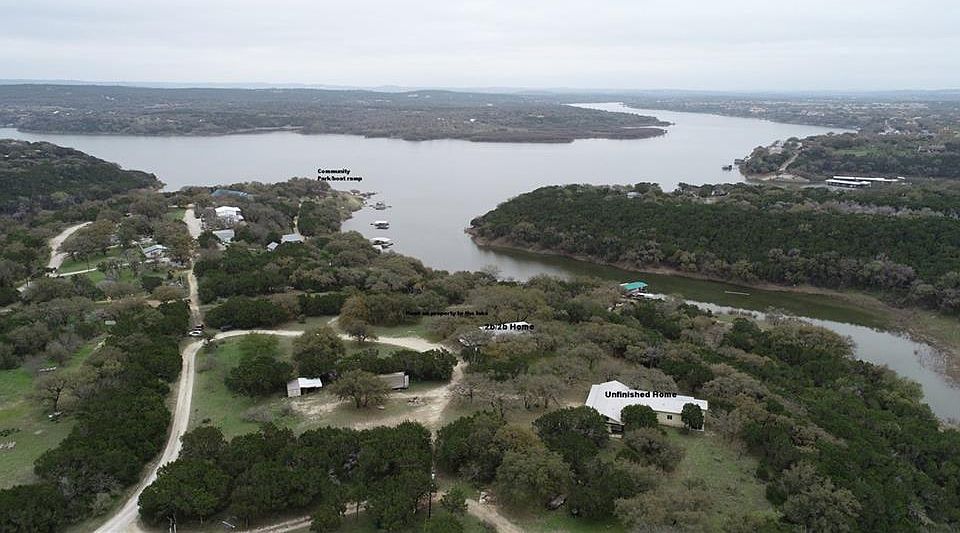 Direct view of Lake Travis~2b/2b home, well, great sun room, direct access to the lake, 5+ acres. Second building is framed without sheet rock, still time to make changes, plumbed for for possible baths, office, flex space, kitchen, metal roof. Great vacation, VRBO. So many possibilities you are almost waterfront, LCRA owned waters edge in the cove but a side road on the property will take you to the water or voluntary HOA has park w/boat ramp area at the end of Turkey Tree Rd.