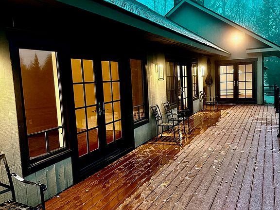 Large wood-burning fireplaceSerene mountain vistasFresh interior design touchesExpansive new deckMain floor primary suiteBeautifully updated bathrooms