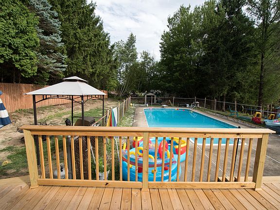 EVERYTHING about this House ''SCREAMS Home Sweet HOME'' with 4 bedrooms in a great neighborhood. Large family room on lower level with a wood burning stove. The large 18 X 36 foot in-ground pool and 49 foot wrap around back deck make entertaining fun! and plenty of storage. Recently surveyed.