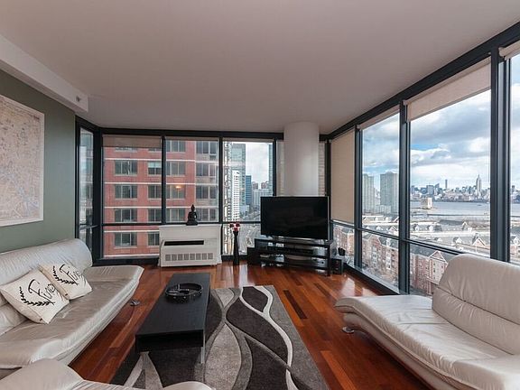 Stunning well kept large two bed condo in the luxurious A Condos in Jersey City Downtown.The unit is 1336 sq feet plus a terrace with breathtaking views of Manhattan and the river.It is close to parks,malls,highways and path station for easy commute to city.It comes with one deeded parking space and can be rented furnished for 4,300$.